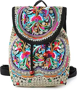 Embroidery Backpack Purse for Women Vintage Handbag Drawstring Casual Travel Shoulder Bag Daypack