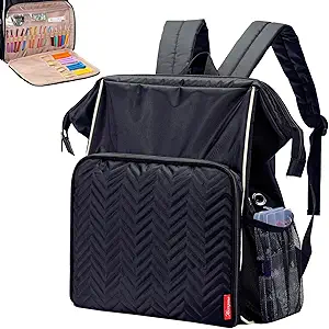 Knitting Bag, Crochet Bag with Custom Front Pocket, Large Yarn Storage Backpack for Crochet Accessories and Supplies, Black