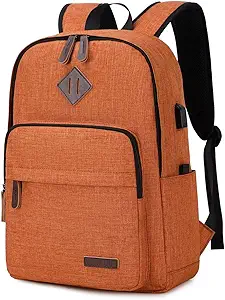 Laptop Backpack, Lightweight Bookbag Casual Daypack for Men and Women, College with USB Charging Port - Light Brown