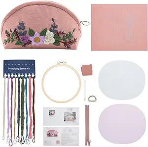 Pink Embroidery Cosmetic Bag DIY Embroidery Coin Purse Kit Handmade Embroidery Crescent Bag with Instruction and Embroidery