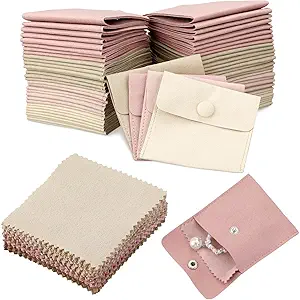 120 Pack Microfiber Jewelry Pouch with Cleaning Cloth 3.2"x3.2" Jewelry Packaging Bag with Snap Button Bags