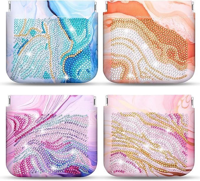 4 Pcs Diamond Painting Coin Purse Pouch Leather DIY Rhinestone Paint Handmade Clutch Change Holder Change Purse Diamond Painting
