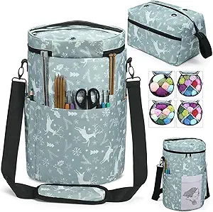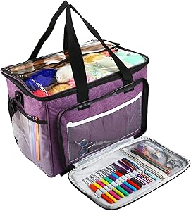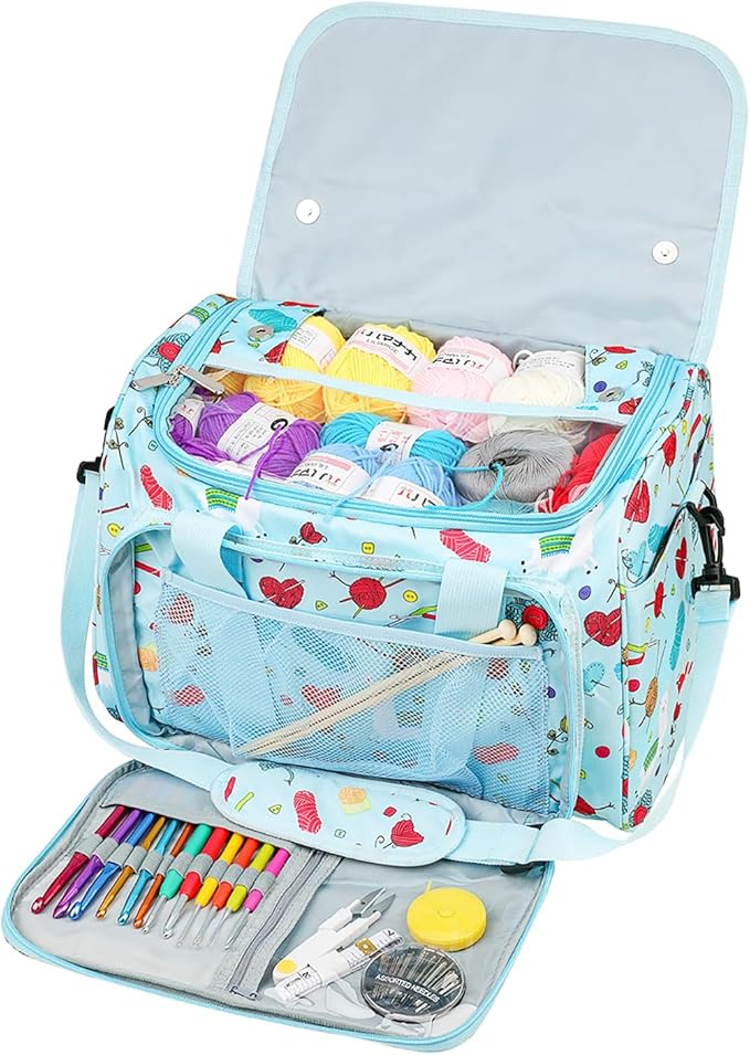 Crochet Storage Bag Yarn Bag Large Knitting Bag for Crochet Hooks, Needles, Yarn Skeins and Accessories with Removable Inner