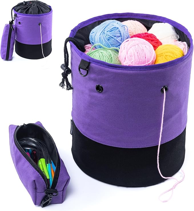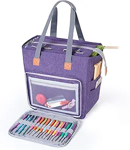 Knitting Tote Bag, Yarn Storage Bag for Carrying Projects, Knitting Needles, Crochet Hooks and Other Accessories, Purple
