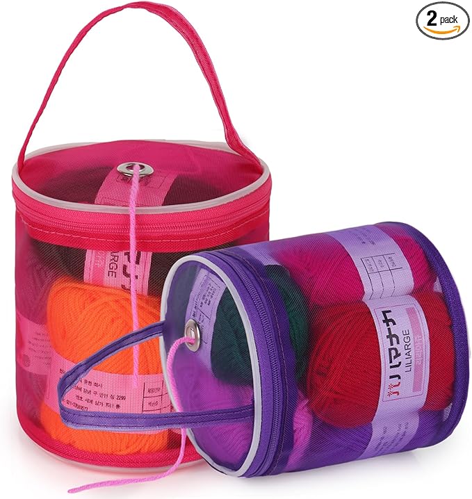2PCS Yarn Storage Bag,Small Yarn Bag for Mesh Holder,Mesh Knitting Bag Portable Yarn Wool Storage Bag,Mesh Knitting Bag Round